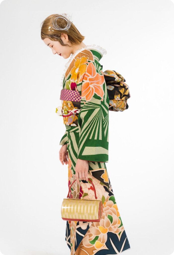 おばあさま‧お母さまやご姉妹が着られた思い出の振袖に合わせて小物をコーディネートする事も可能です。