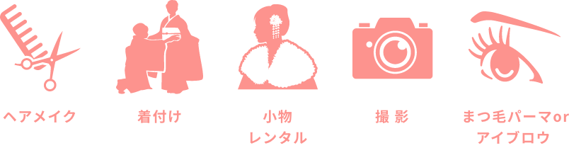 ヘア‧メイク‧着付けも当日‧前撮りの2回分含まれております。
