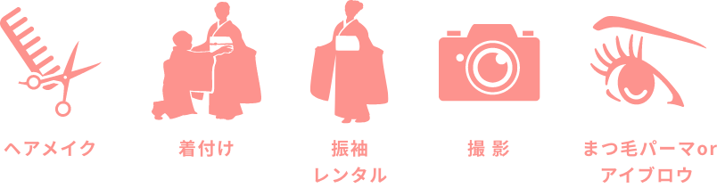 ヘアセットもいつもの担当美容師さんなら、ヘアカラーからセットやそれに合わせた振袖だって選べます!一生に一度の成人式を頭の先から足元まで全身トータルコーディネート♪
